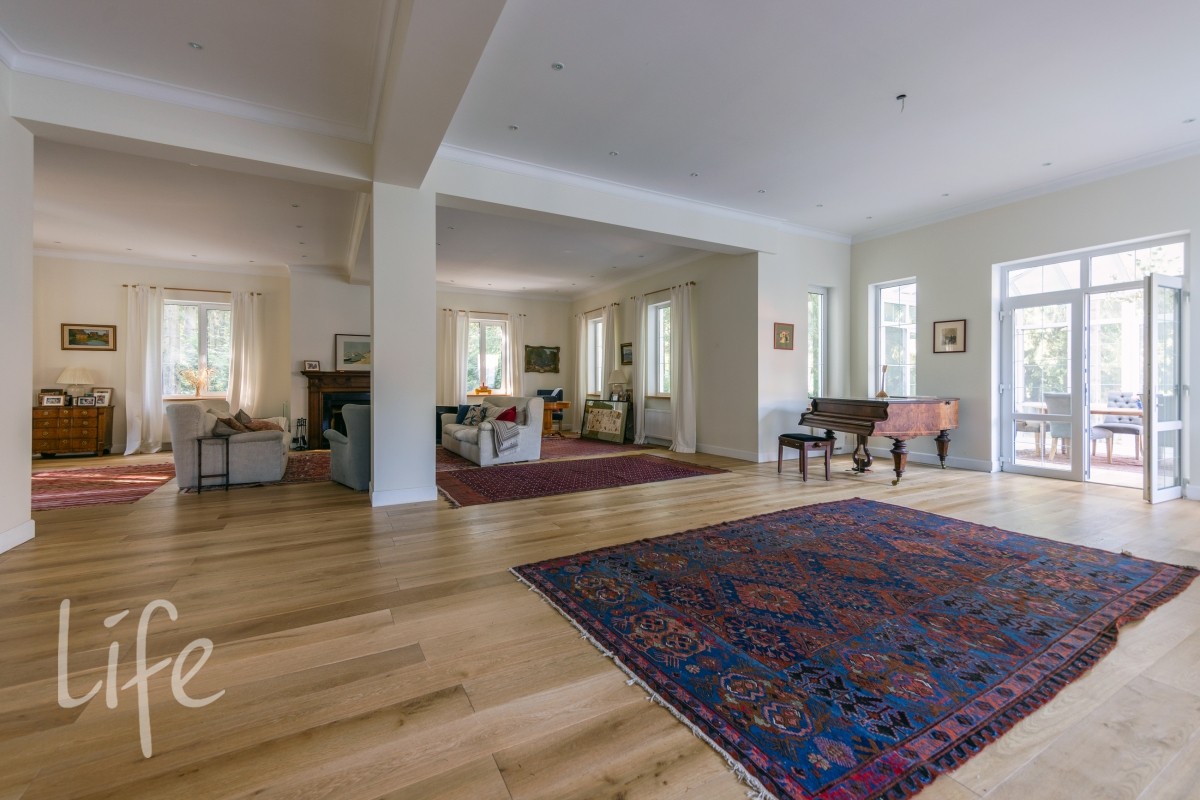 Элегантный дом с просторными помещениями и высокими потолками имеет очень удобную планировку. Благодаря большим окнам в интерьере всегда много естественного света.