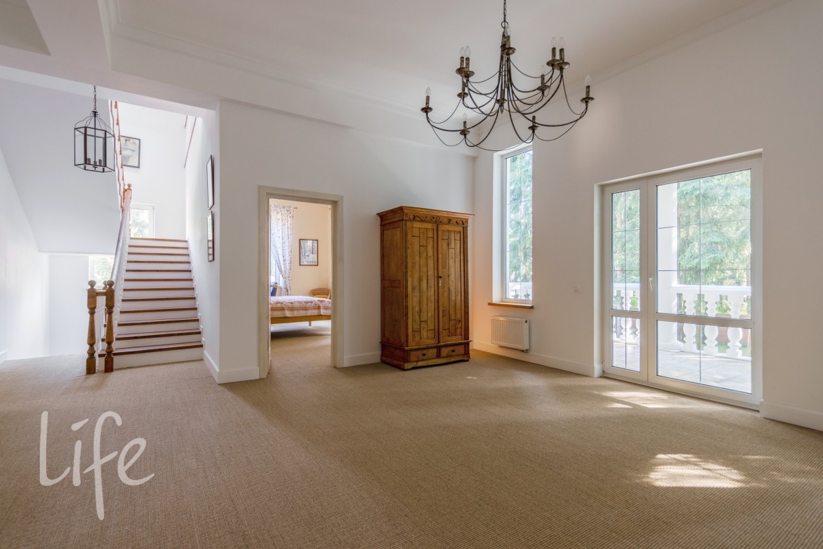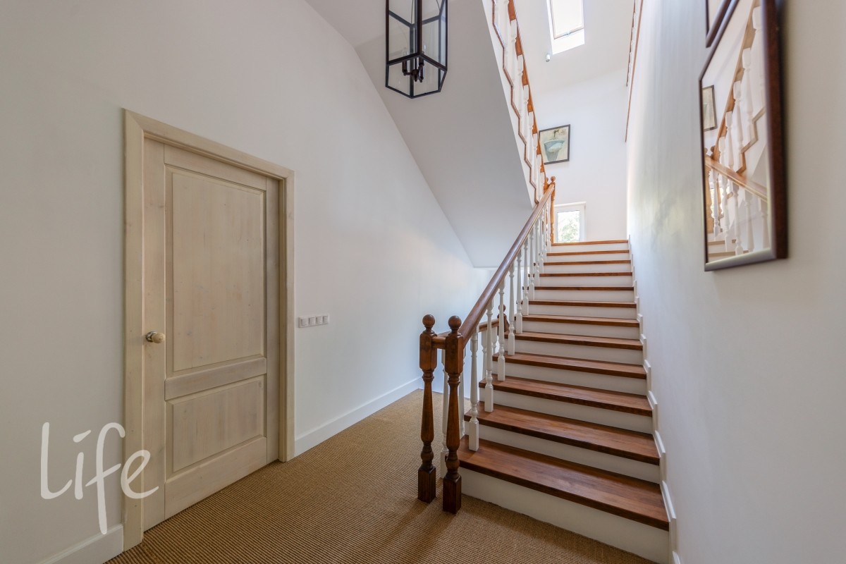 2 этаж: просторная мастер-спальня с ванной комнатой и гардеробной, большой холл-библиотека с выходом на балкон, две детские спальни, ванная комната.
