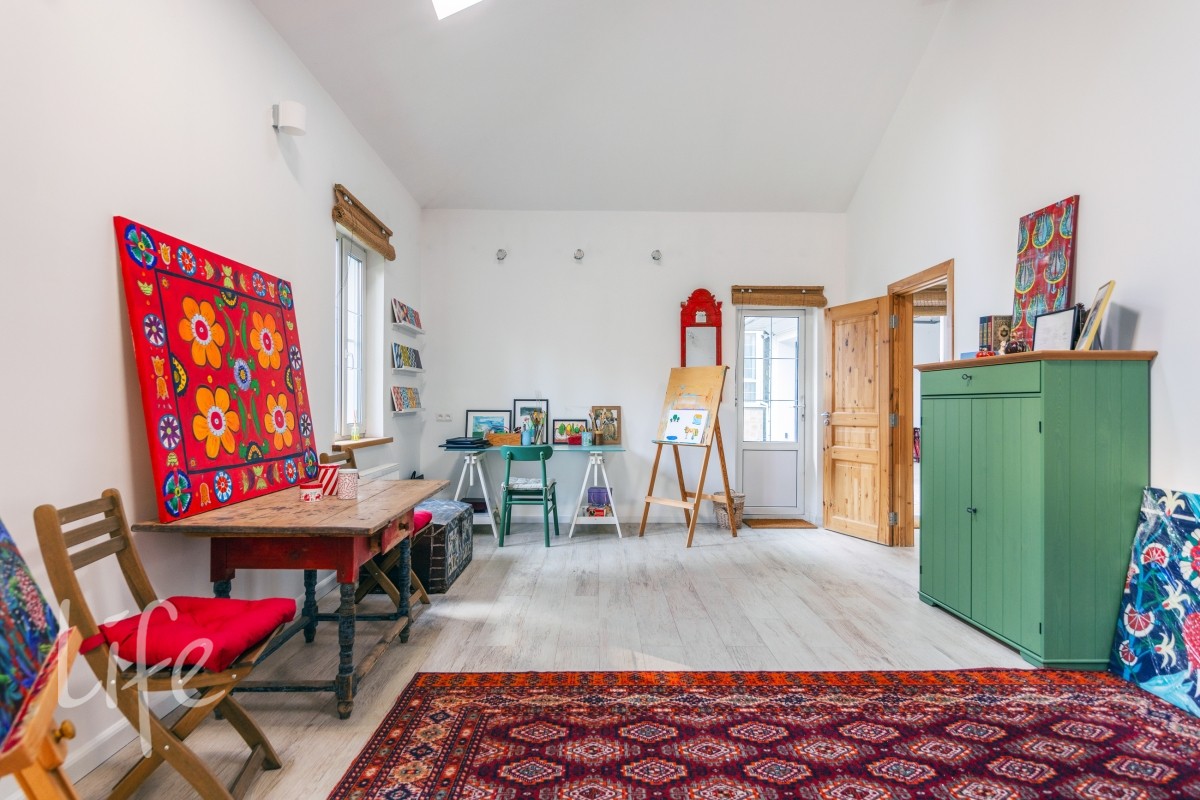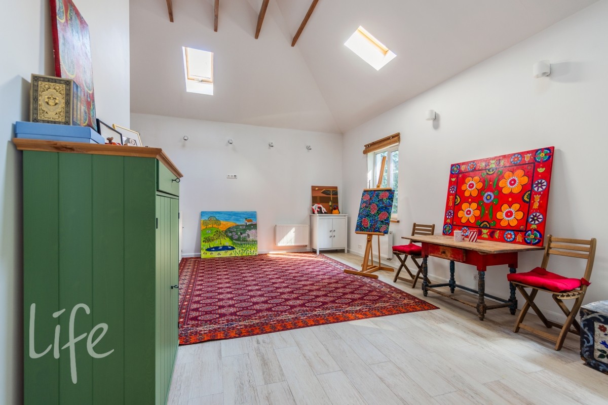 На участке расположен гостевой дом: спальня и просторная студия/мастерская с высокими потолками, душевая, прачечная и котельная (котел de Dietrich innovens PRO mca 90)