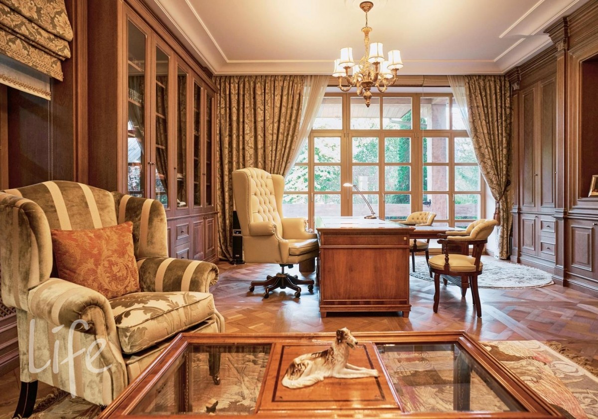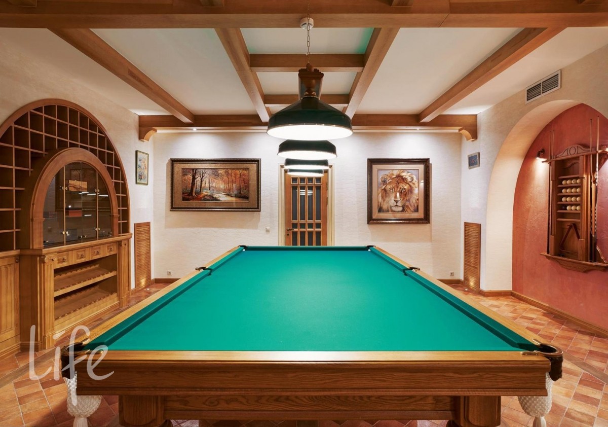 Цокольный этаж: холл, бильярдная и кинозал, с/у, 2 большие гардеробные для хранения сезонной одежды, холодильник для шуб, кладовая, постирочная, кладовая, винная комната, технические помещения.