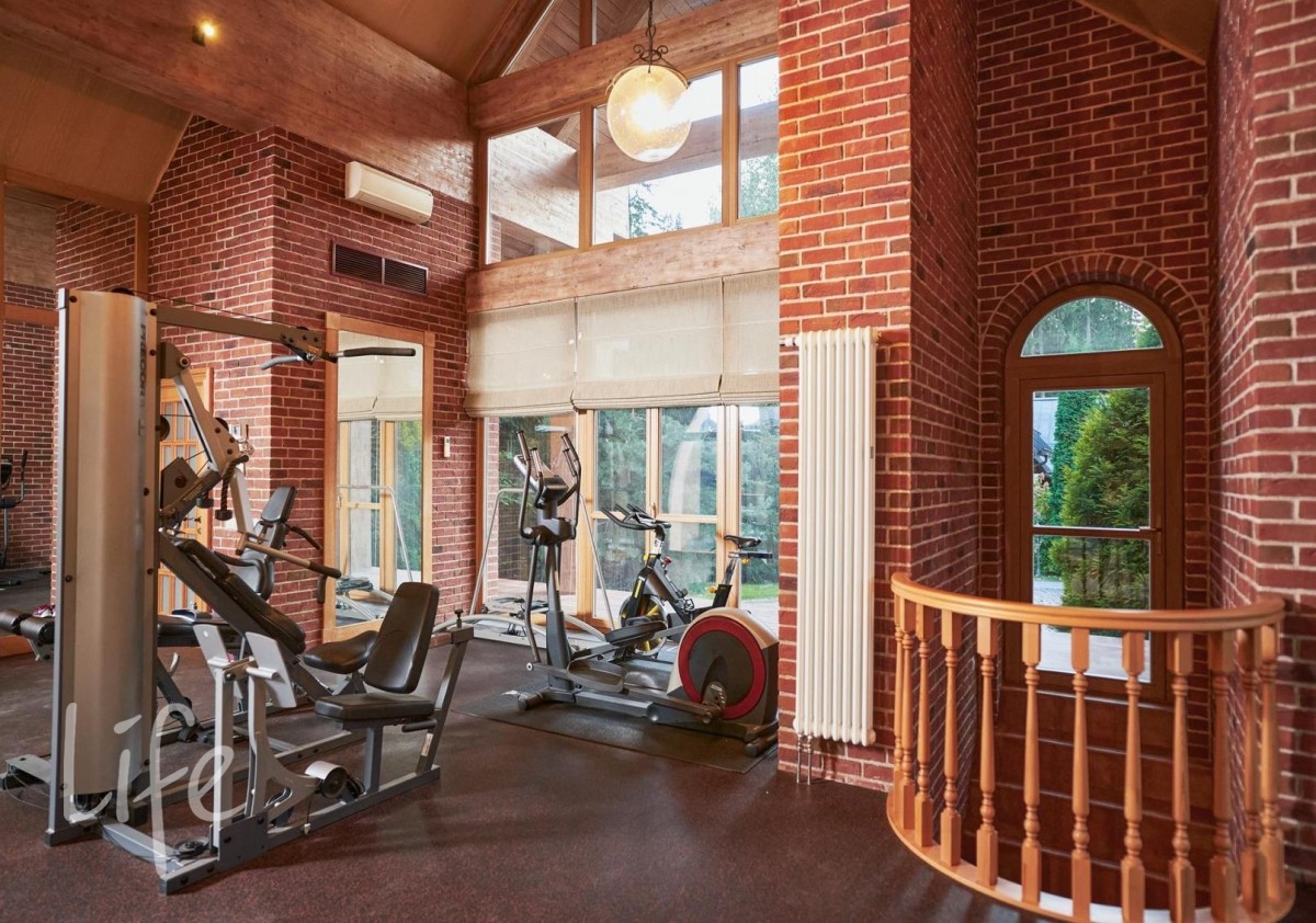 1 этаж: холл, прихожая, гардеробная, с/у, кухня-столовая, северная веранда для приема гостей, кабинет с выходом на террасу, гостиная с камином, тренажерный зал, с/у, кабинет, хозяйская спальня с гардеробной и с/у и выходом на просторную террасу.