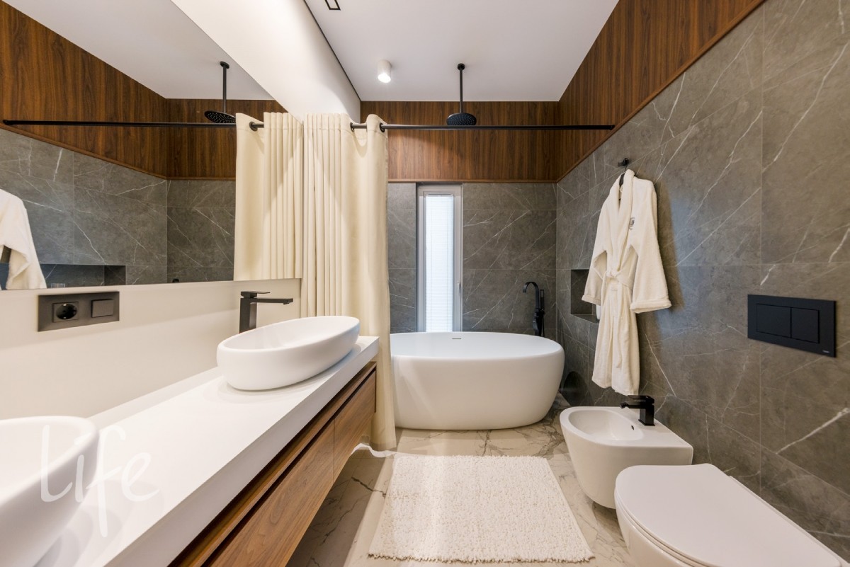 Дорожки к дому оснащены автоматической системой снеготаяния — никакого льда, сугробов и лишних хлопот.