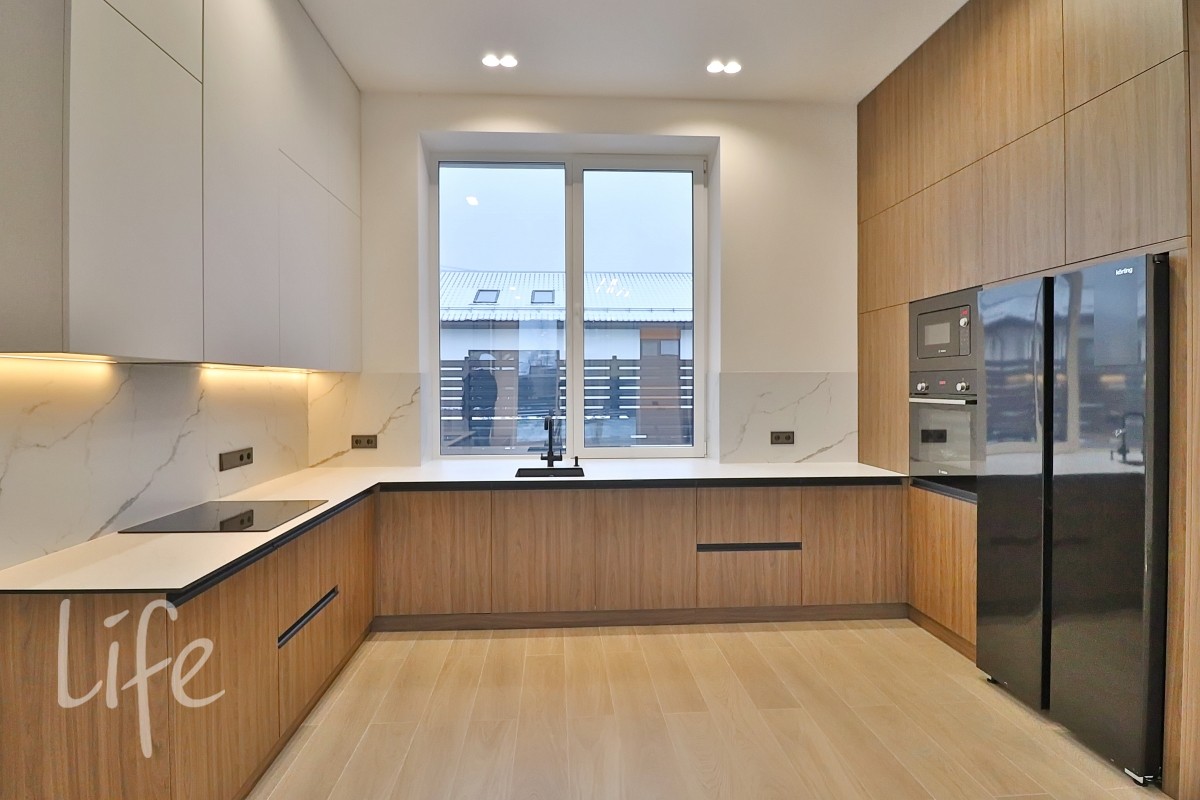Охраняемый поселок. Новый дом в стиле хай-тек, под ключ, установлен кухонный гарнитур.
