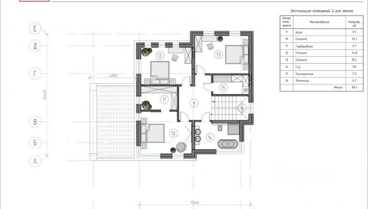 2 этаж: холл, спальня с гардеробной, с/у, две спальни, летняя терраса.