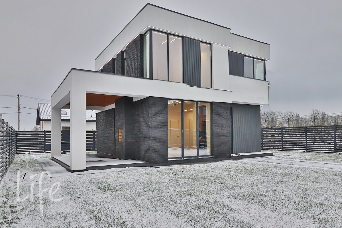 Охраняемый поселок. Новый дом в стиле хай-тек, под ключ, установлен кухонный гарнитур.