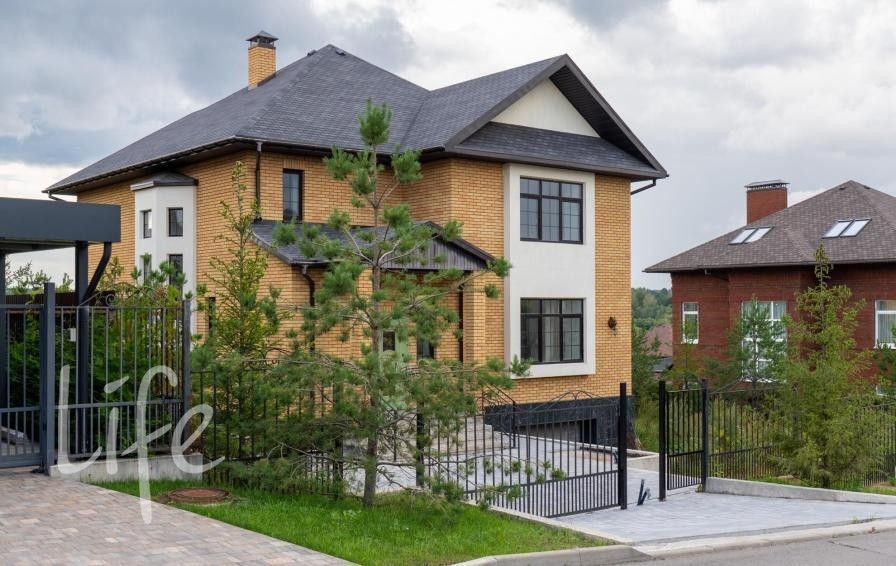 Дом стоит на видовом участке рядом с рекой Десна и лесом в обжитой части охраняемого коттеджного посёлка бизнес-класса.