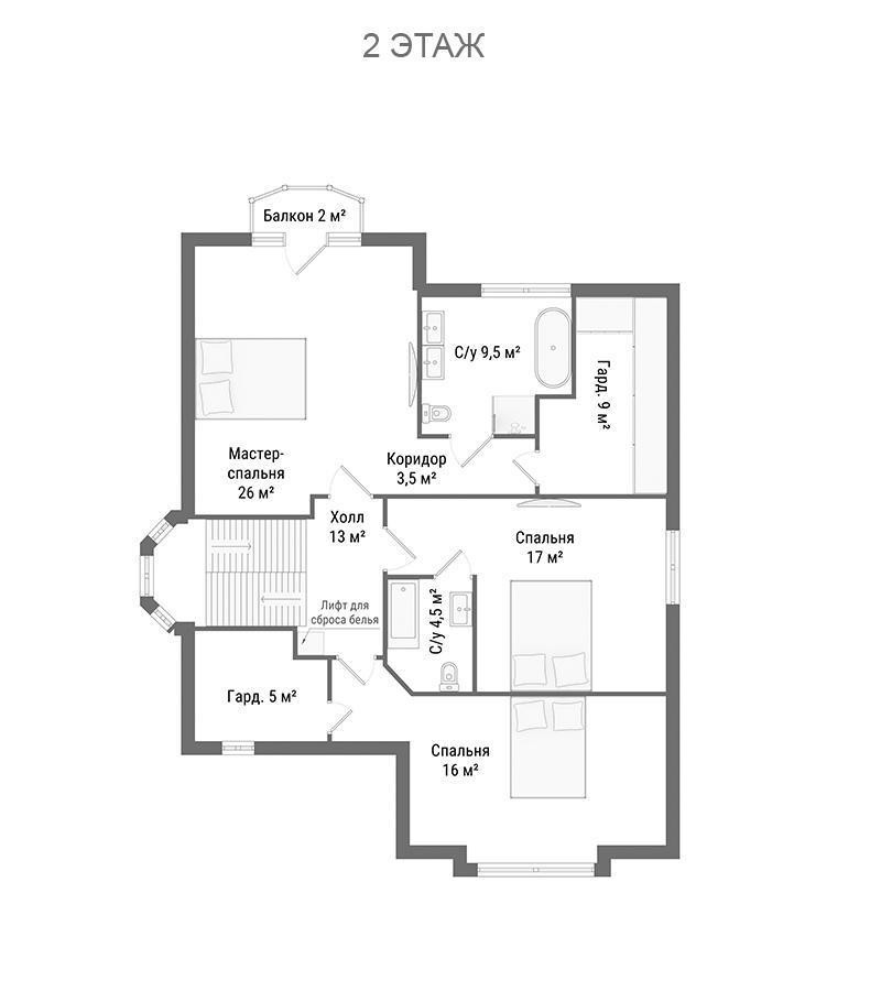 На 1-м этаже – зимний сад-терраса с панорамным остеклением и раздвижными окнами на 3 стороны. Оформление интерьера выполнено в светло-серых тонах из высококачественных