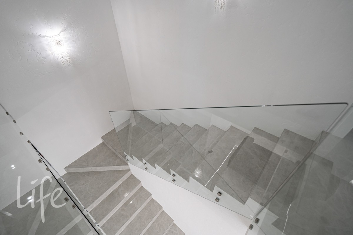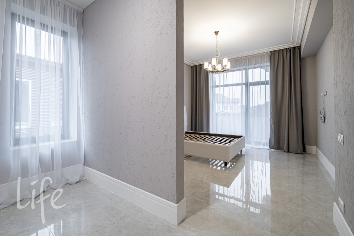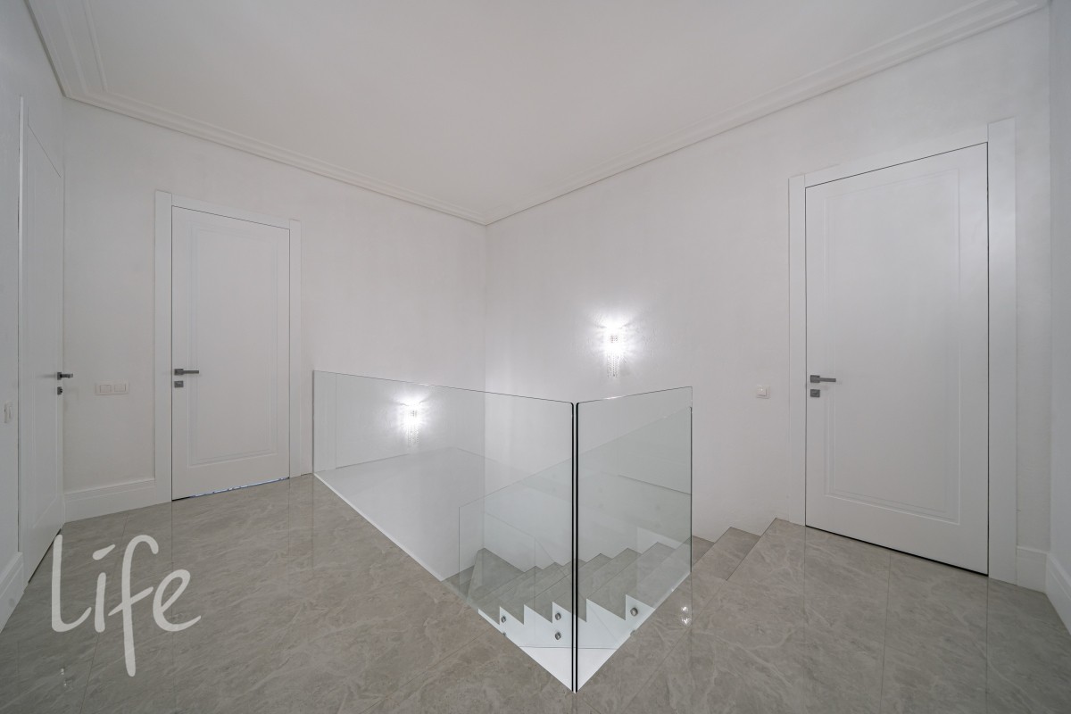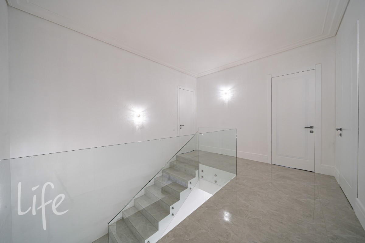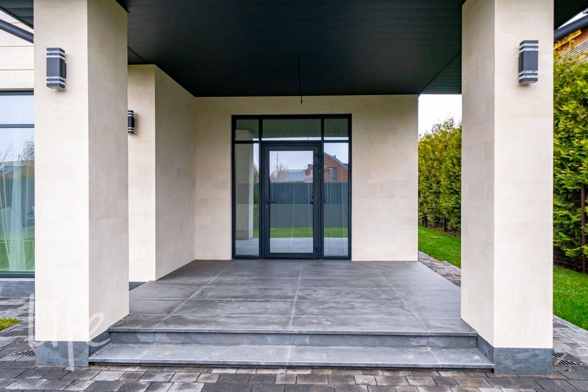 Дом находится в состоянии под ключ: полы — керамогранит, стены — под покраску, потолки — полностью завершены. Все санузлы оборудованы качественной