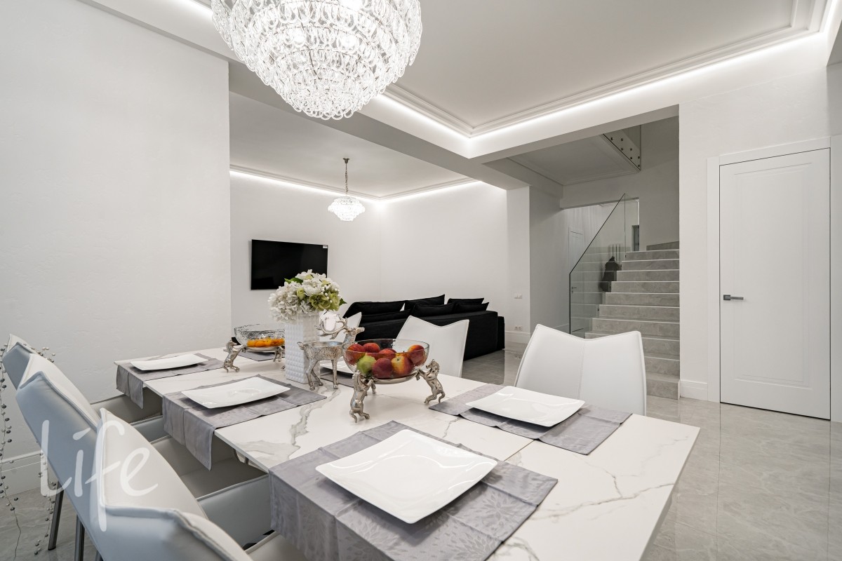 сантехникой. В комплект входят шторы, люстры, диван. Кухня подготовлена по дизайн-проекту.