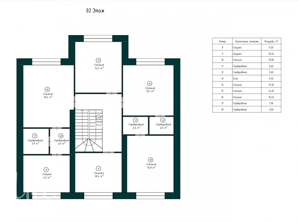 2 этаж: мастер- спальня со своим су у и гардеробной, три детские спальни с гардеробными, су.