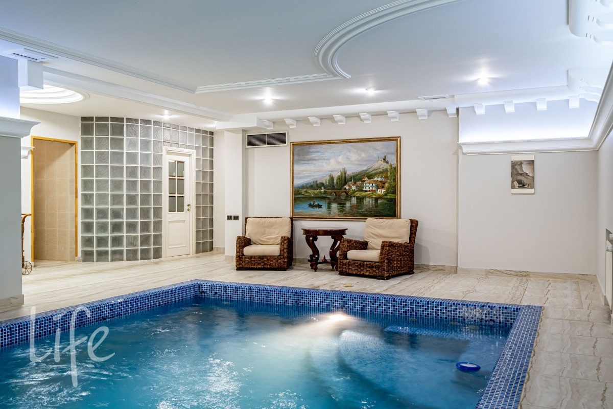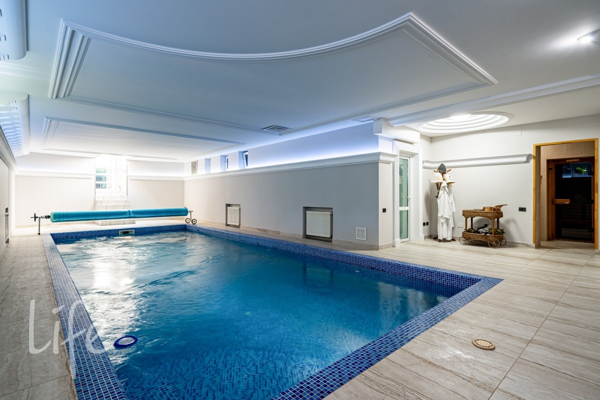 Цоколь: спа-зона с бассейном, сауной, душевые, бильярдная, котельная, постирочная.