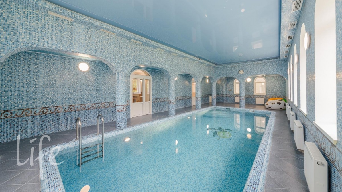 В зоне отдыха бассейн, сауна, бильярдная с русским бильярдом 12 футов, теннисная и массажная комната. В отделке использованы дорогие материалы. На полу паркетная доска. Установлена итальянская кухня и сантехника, теплые полы, кондиционеры, видеонаблюдение. В каждой комнате система увлажнения. Дом полностью меблирован и готов к проживанию, заведен мощный интернет и спутниковое ТВ.