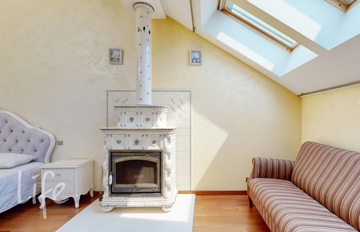 3 этаж: холл с зоной отдыха, мастер-спальня с дровяным камином с изразцами со своей гардеробной и с/у с душевой с паром и местом для установки ванной.