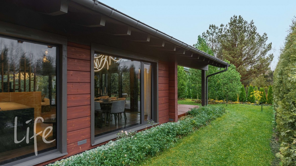 Его ворота длиной 7 метров и финские входные двери долговечны, утеплены и абсолютно надежны.