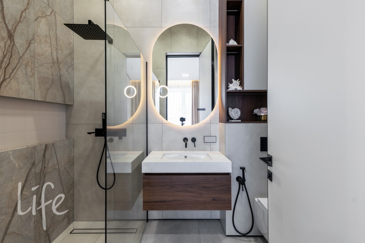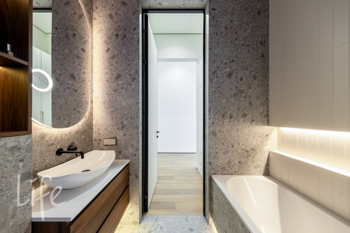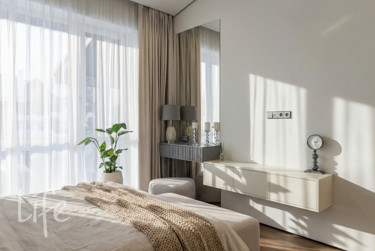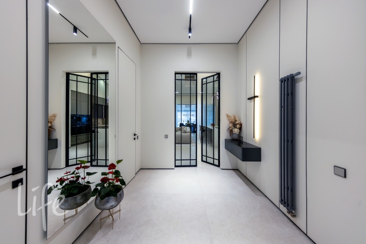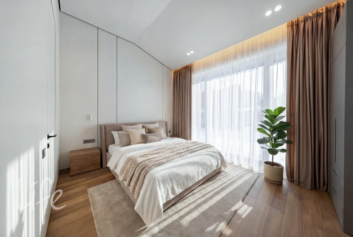 1 этаж: прихожая, гардеробная, котельная, гостевой с/у, постирочная комната c оборудованием Miele, премиальная кухня со встроенной техникой ASKO, варочная панель с вытяжкой Elica NIKOLATESLA, два холодильника Liebherr, гостиная с дровяным камином, столовая зона с панорамным остеклением и выходом на участок, черновая кухня, хозяйский блок с большой гардеробной и су, две спальни со своими гардеробными и су , кабинет.