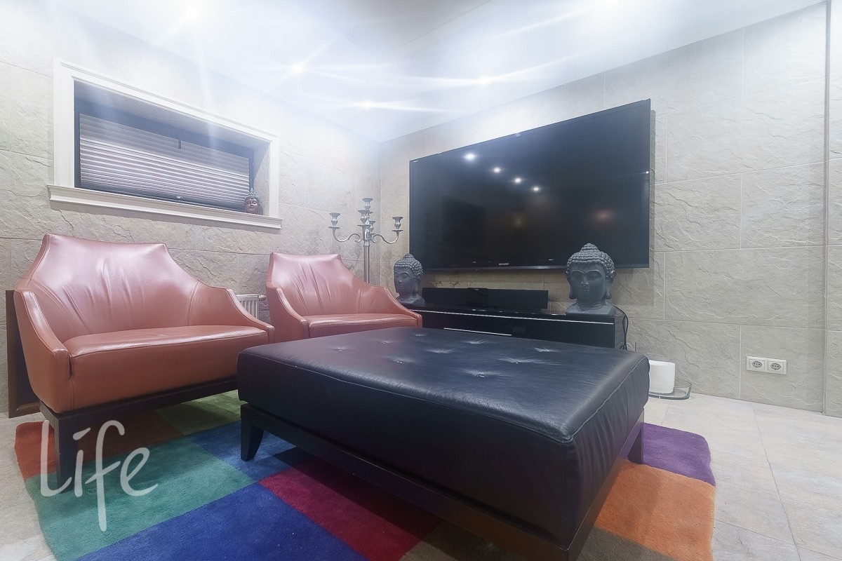 Цоколь: бассейн, сауна, тренажерный зал, душевая - 2 шт., санузел - 2 шт., постирочная, котельная, кладовая, техническое помещение - 2 шт.