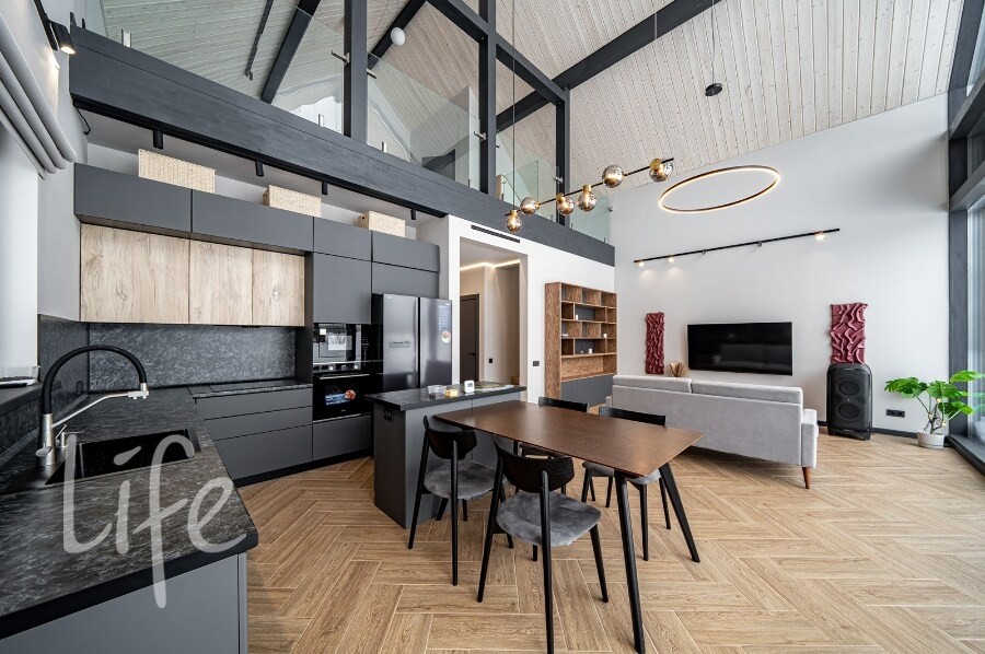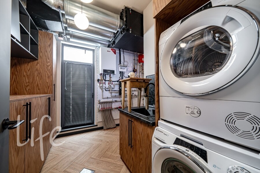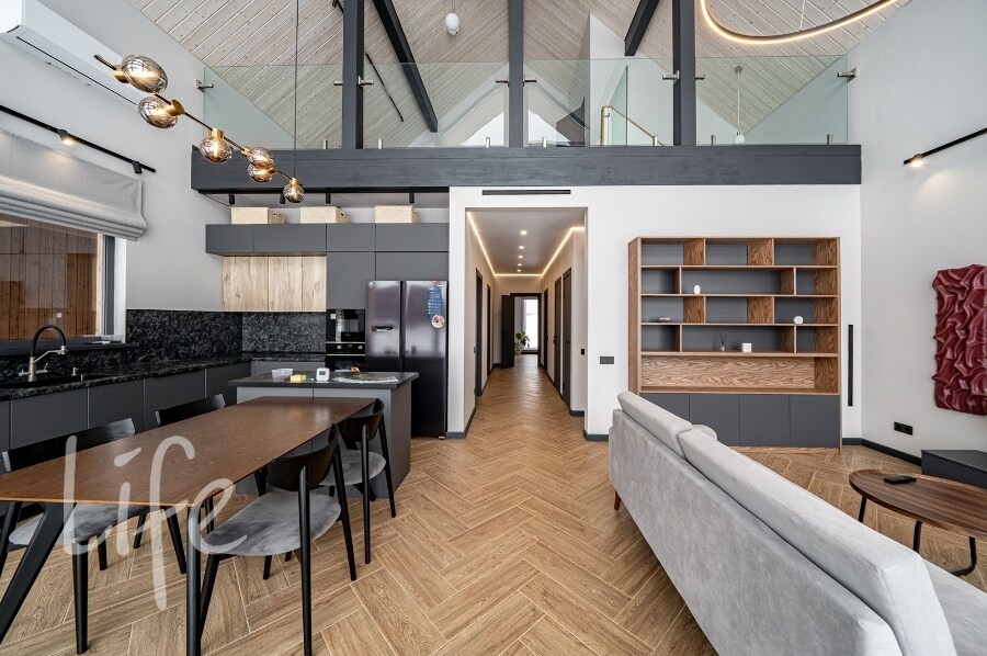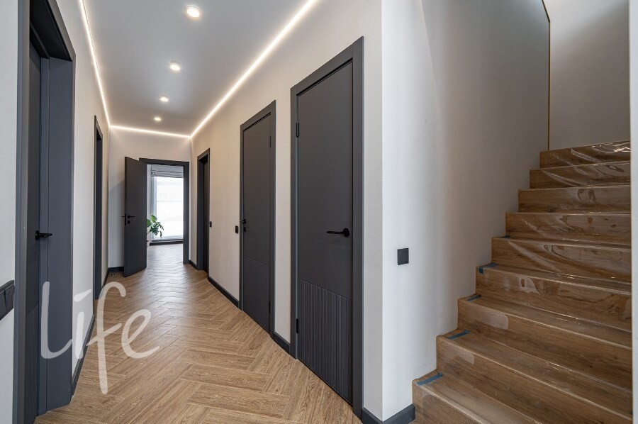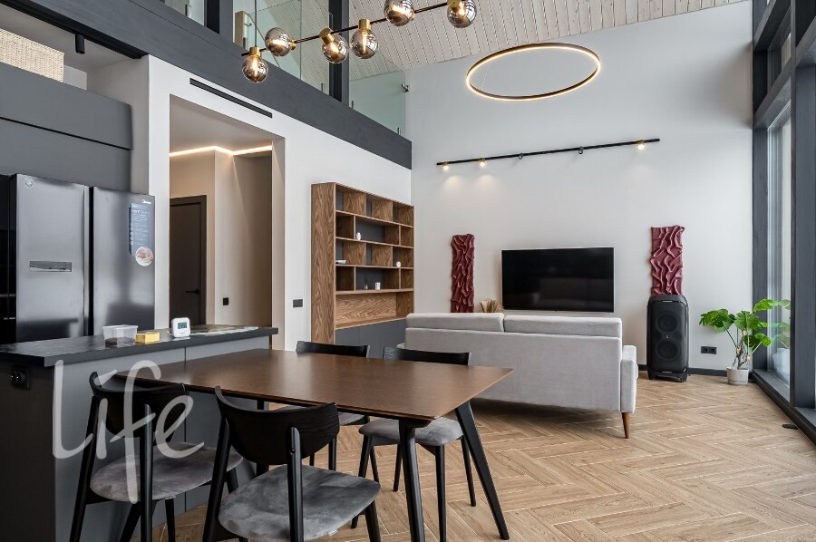 Оснащение: тёплые полы, вентиляция с рекуперацией, кондиционирование, качественная инженерия, усиленная шумоизоляция стен и межэтажного перекрытия.
