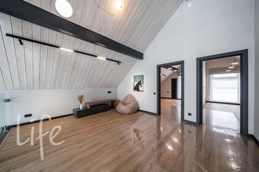Планировка: 3 спальни, включая мастер-спальню с собственным гардеробом и с/у, две просторные детские комнаты, кабинет/гостевая на первом этаже, 3 с/у, гардеробные и места хранения, уличная терраса, хозблок.