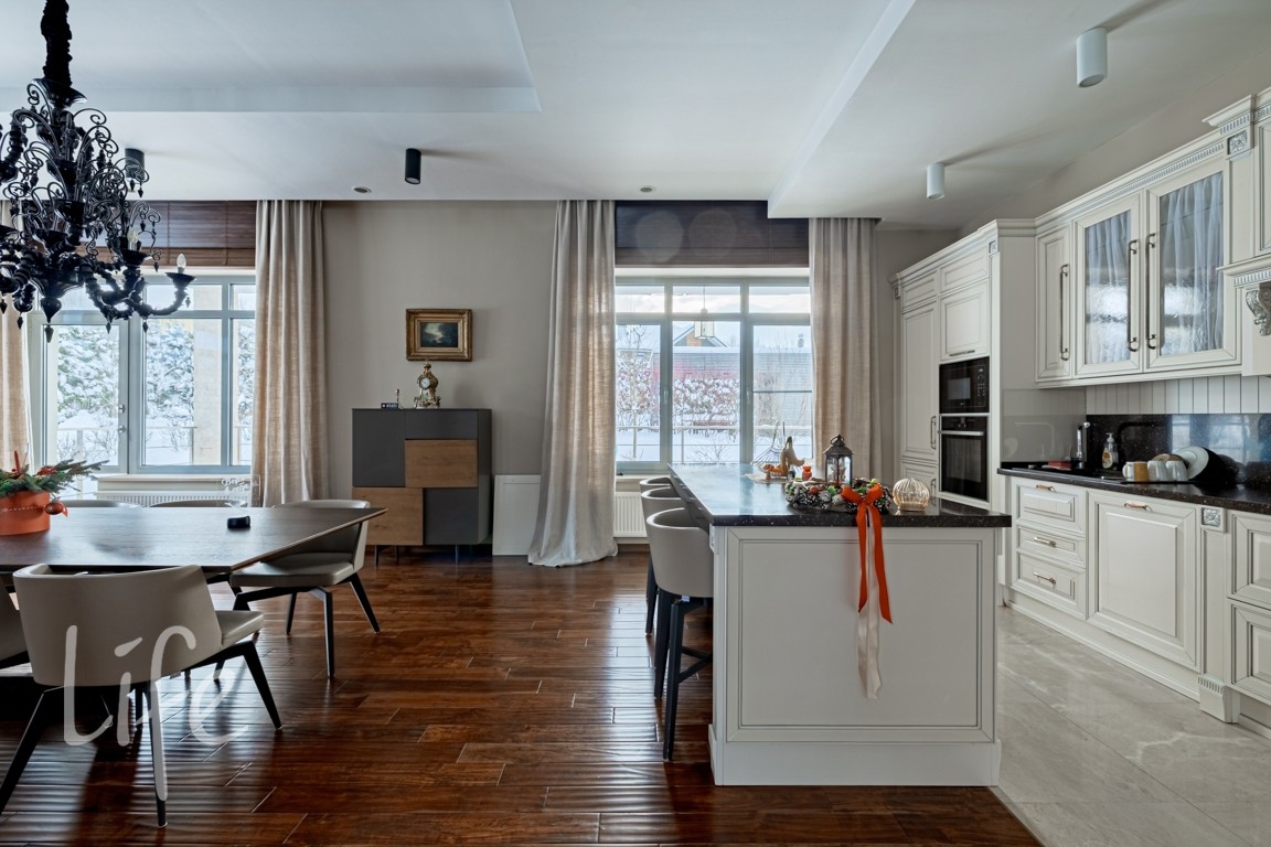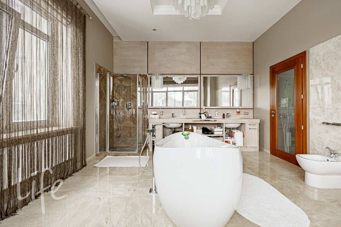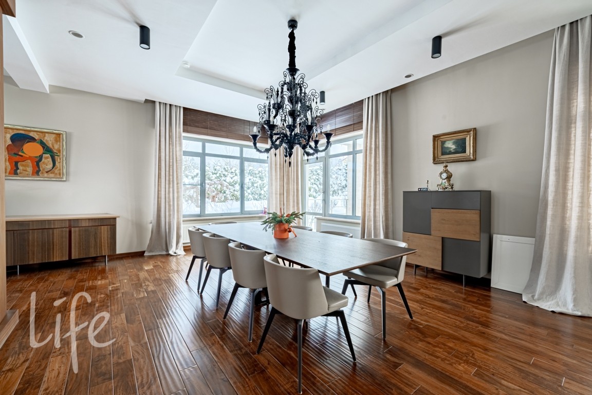 Отделка в лаконичном современном стиле выполнена из качественных натуральных материалов. Дом полностью готов к проживанию, меблирован, оборудован всей необходимой бытовой техникой.