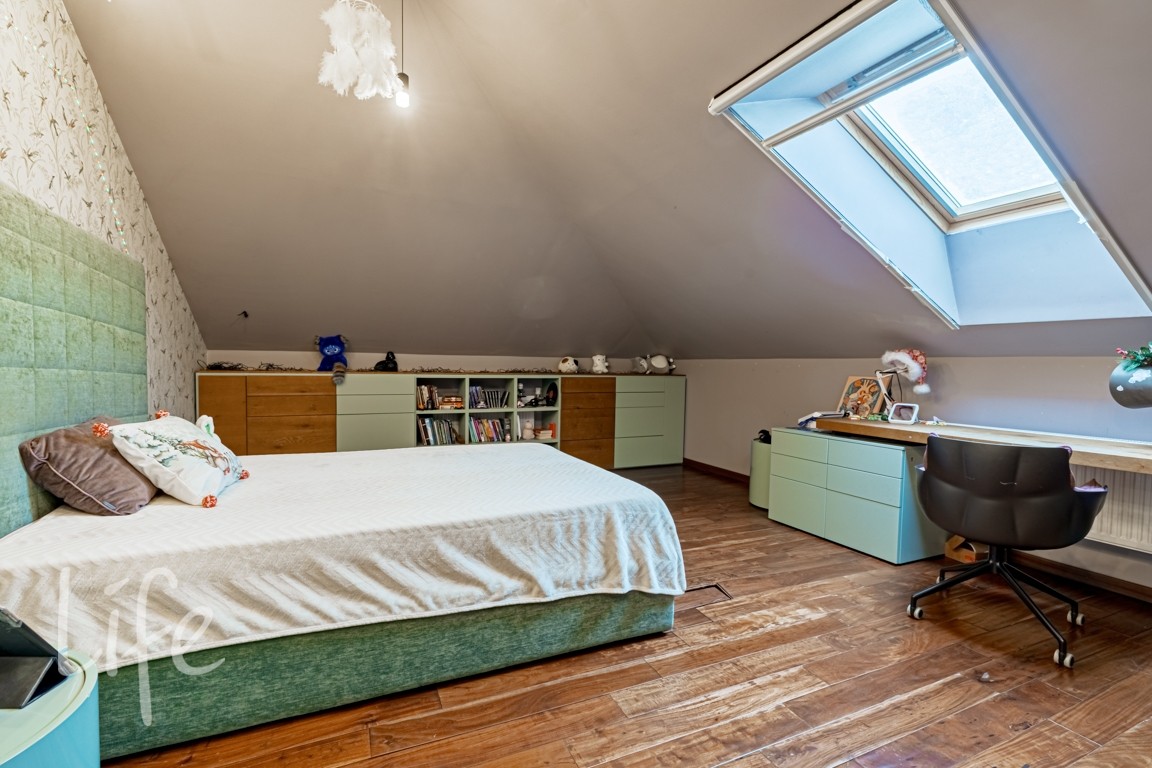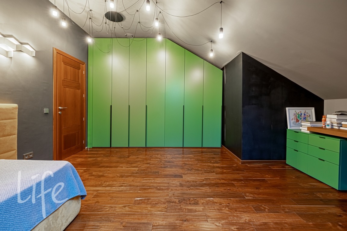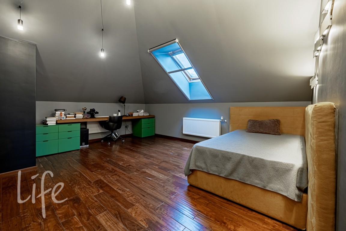 Мансарда: тв-зона отдыха, 2 спальни, 2 с/у, мастерская.