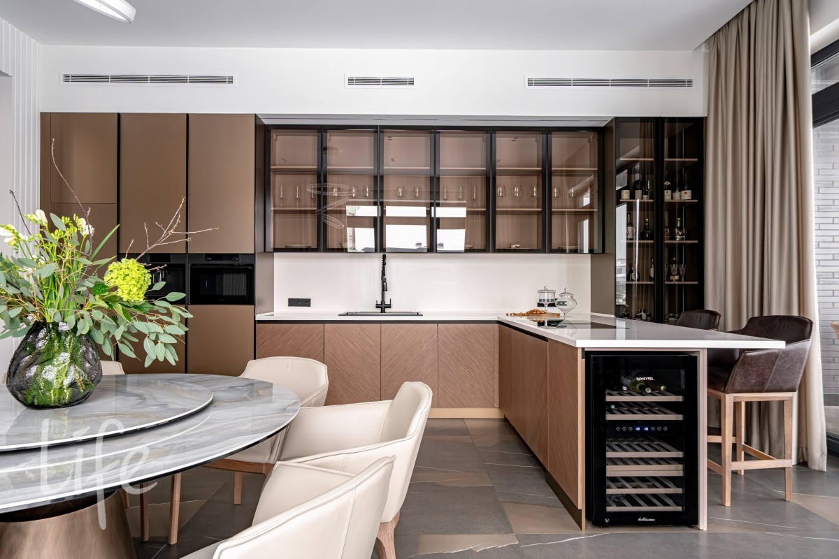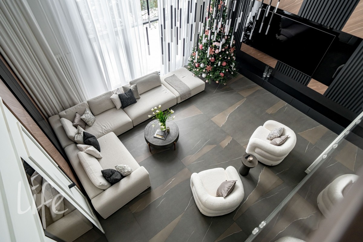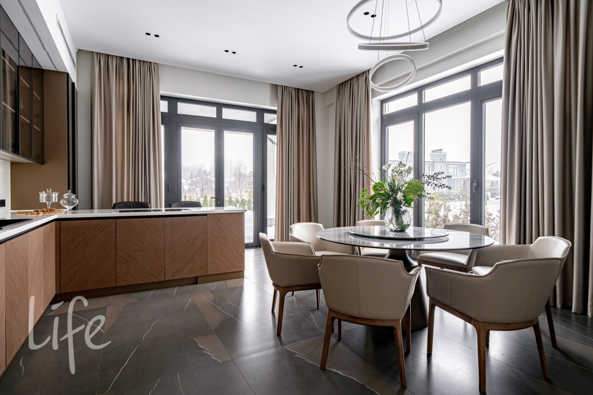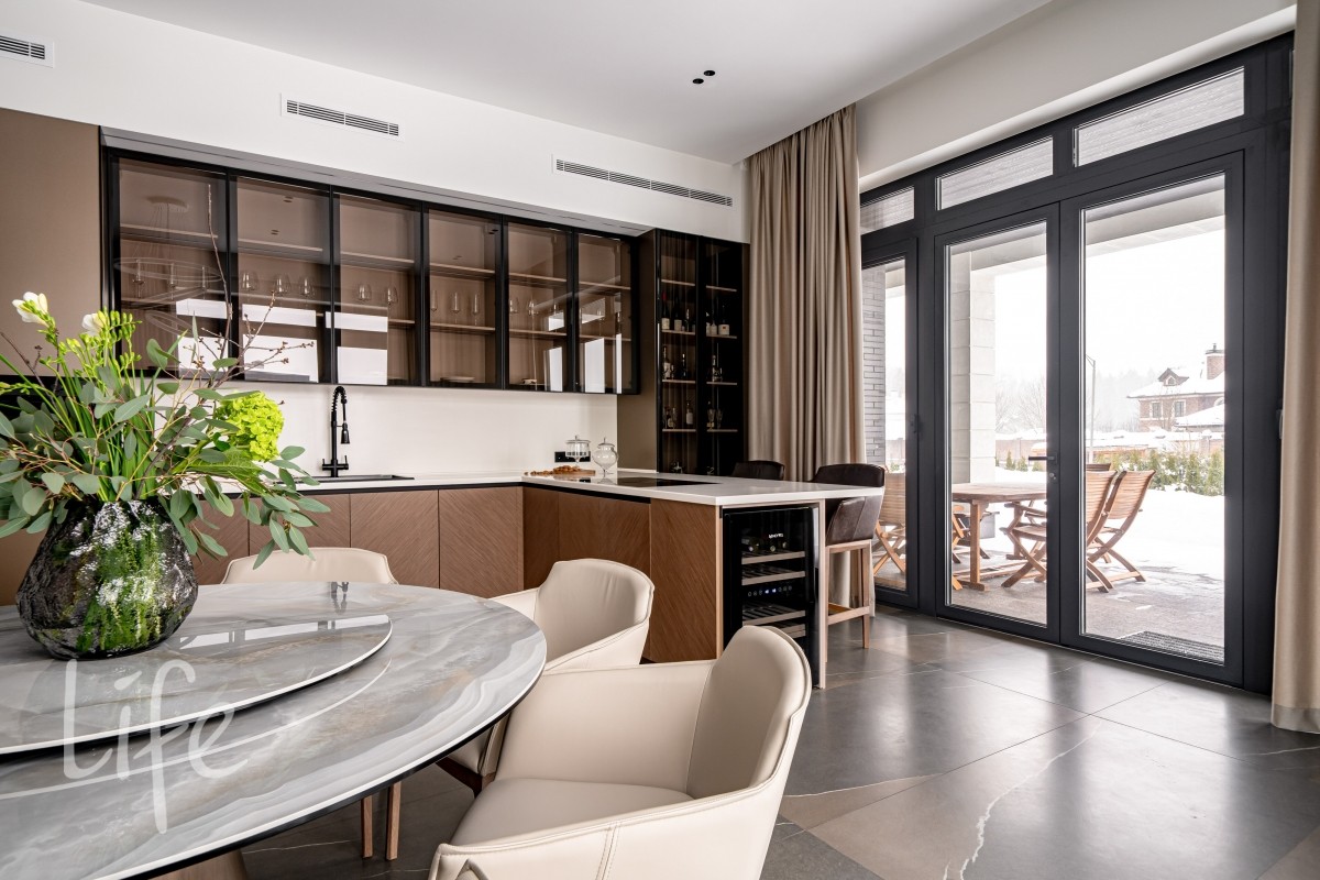 1 этаж: гостиная, кухня-столовая (Оборудована островом со встроенной вытяжкой и премиальнойтехникой ASKO, включая винный шкаф и кофемашину). Мебель от Dantone Home. Мастер-спальня, гостевая зона (спальня с собственным с/у), просторный холл, постирочная, гостевой с/у и гараж на 2 авто и 2 мотоцикла.