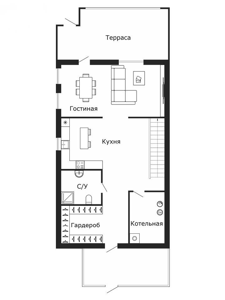 Дом расположен на второй линии от леса — тишина и приватность.