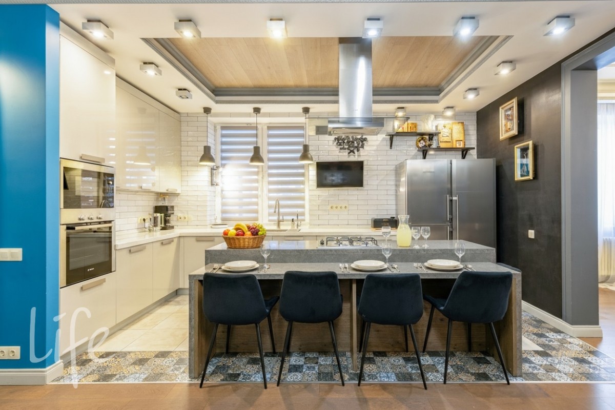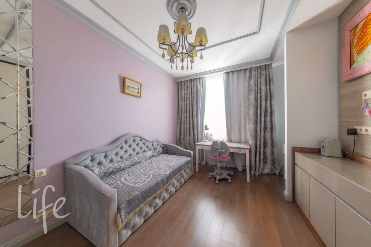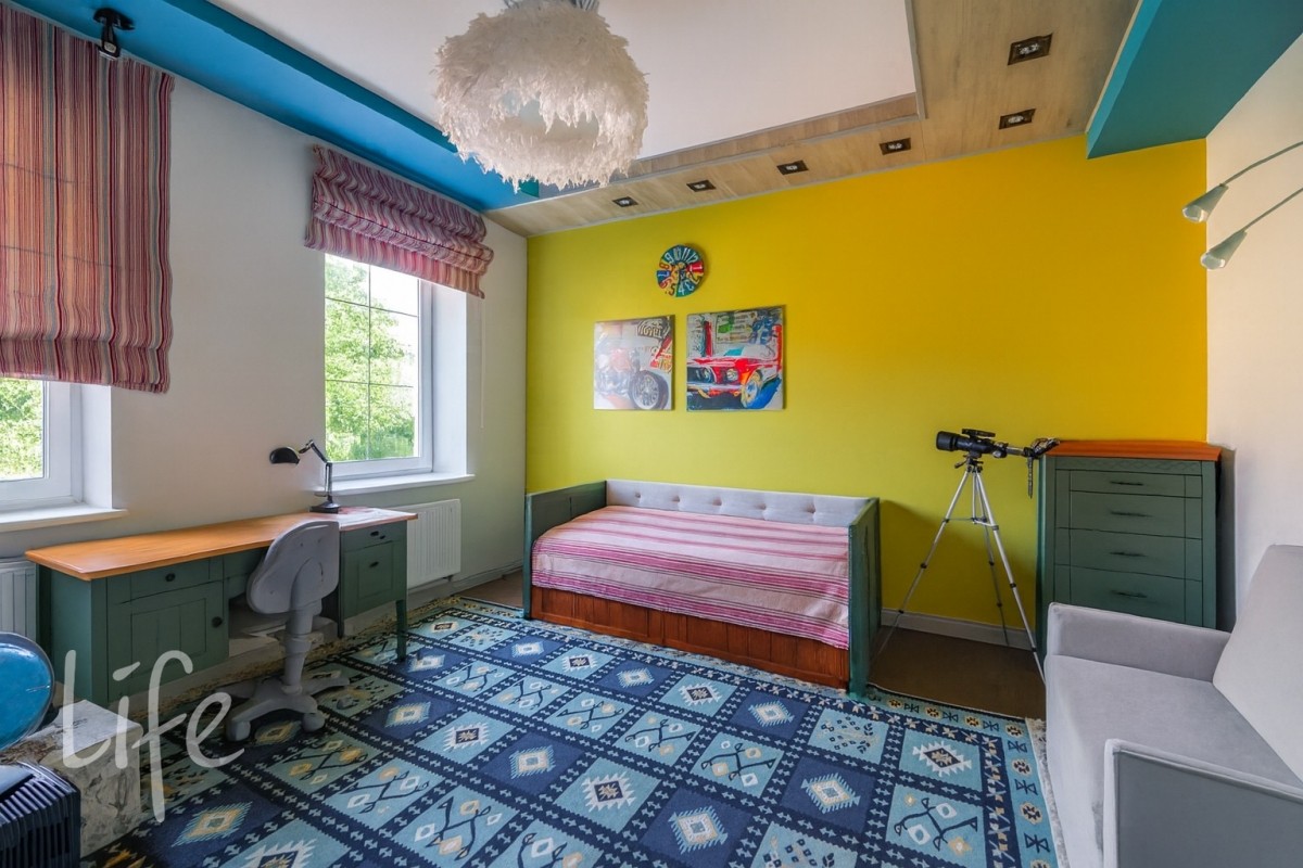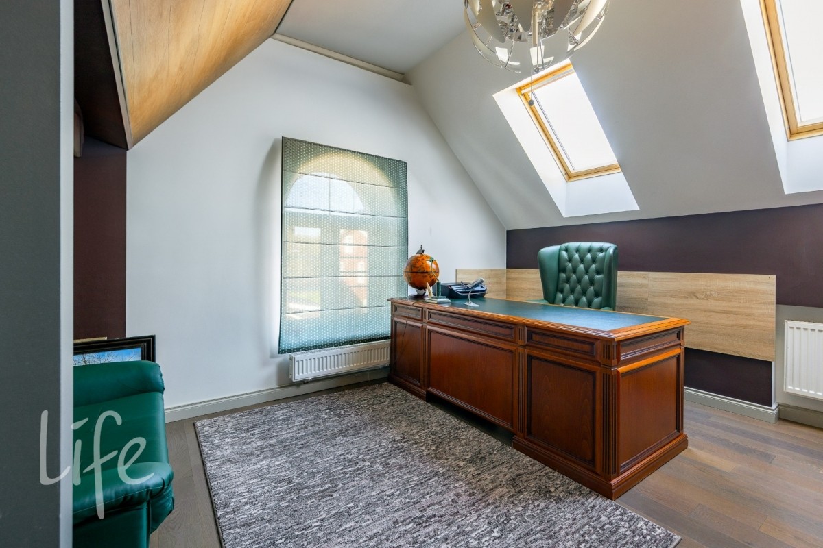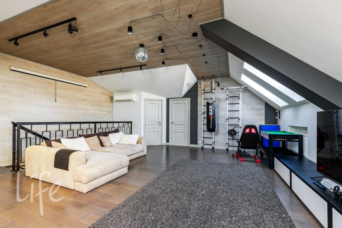 5 спален (мастер-спальня со своим санузлом, три детские и гостевая); кабинет и лаунж-зона; 4 санузла, включая полноценный на первом этаже; кухня-столовая-гостиная с выходом на закрытую веранду.