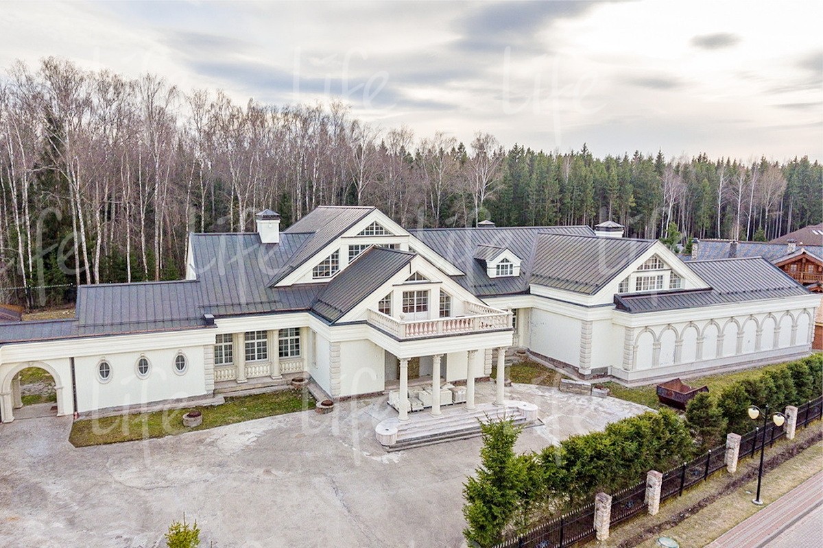 Элитный коттеджный поселок «Риверсайд». Большая усадьба в русском классическом стиле. Под внутреннюю отделку. Частично выполнены черновые отделочные работы.