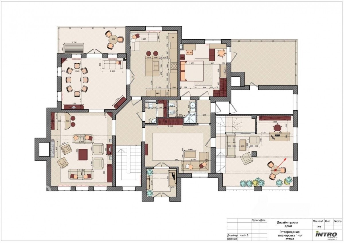 Цоколь: постирочная, спортивный зал, бильярдная, комната для гостей, с/у, бойлерная.
