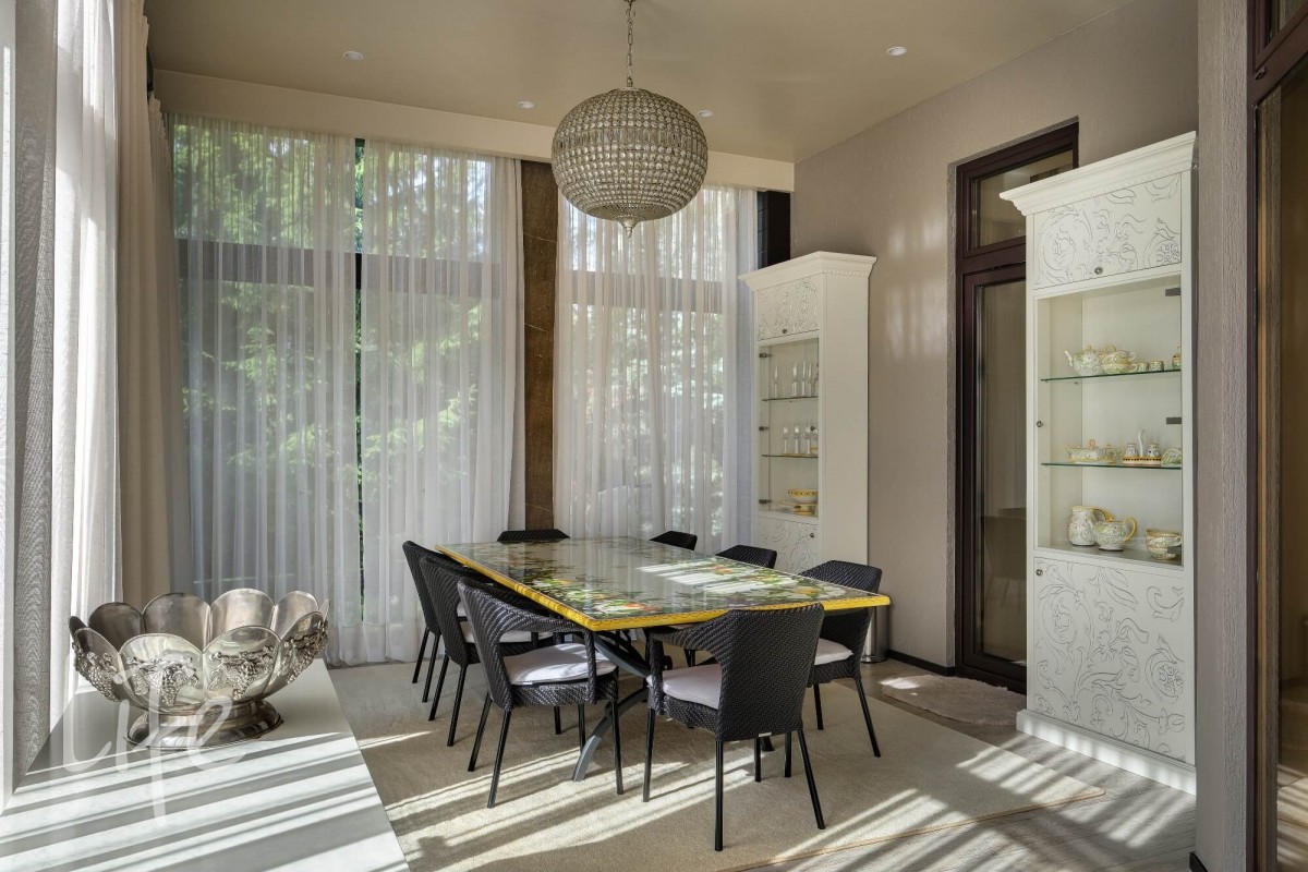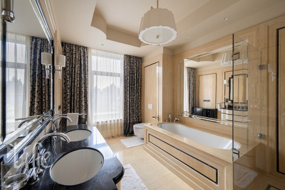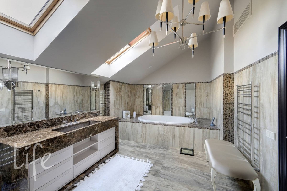 Особенности: функциональная просторная планировка, высокие потолки, большие помещения, светлый интерьер за счет обилия окон, дорогие натуральные материалы в отделке, мебель ведущих фабрик Италии, сантехника и бытовая техника исключительно от лучших мировых брендов. Дом оборудован приточно-вытяжной системой вентиляции, кондиционированием, много теплых полов. Надежный конструктив: ж/б монолит и кирпич, окна Alutech, кровля – из меди.